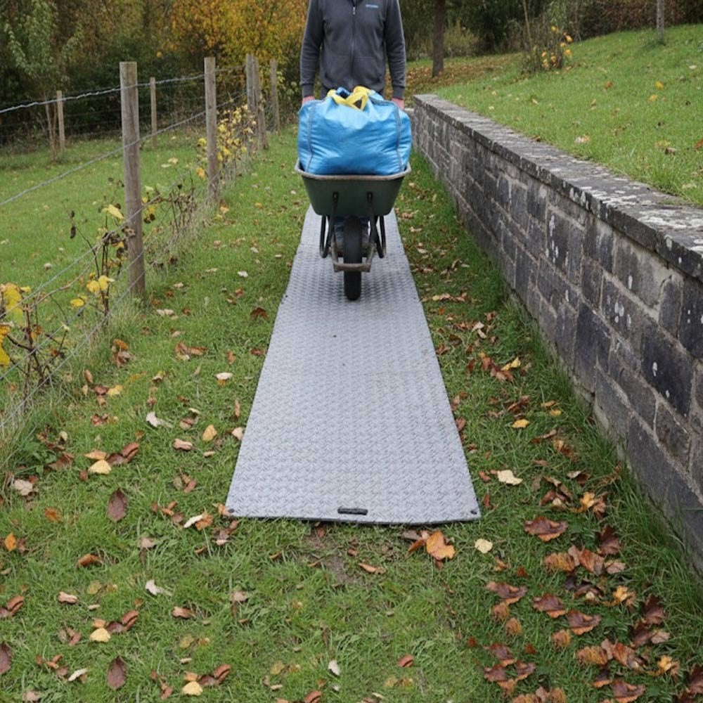Affordable lightweight board offers safe, non-slip pedestrian access while protecting ground surfaces. Easy to carry, quick to install, and reusable.