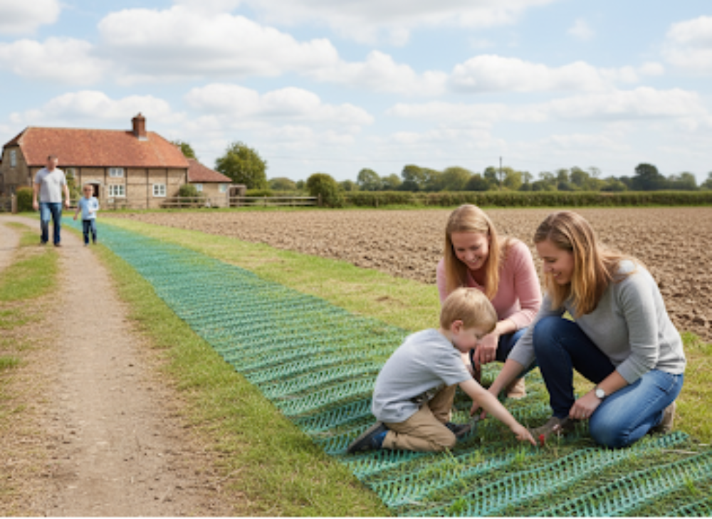 Applications: Heavy-duty access roads, overflow car parks, golf courses, sports fields, embankments, pedestrian walkways, ground reinforcement